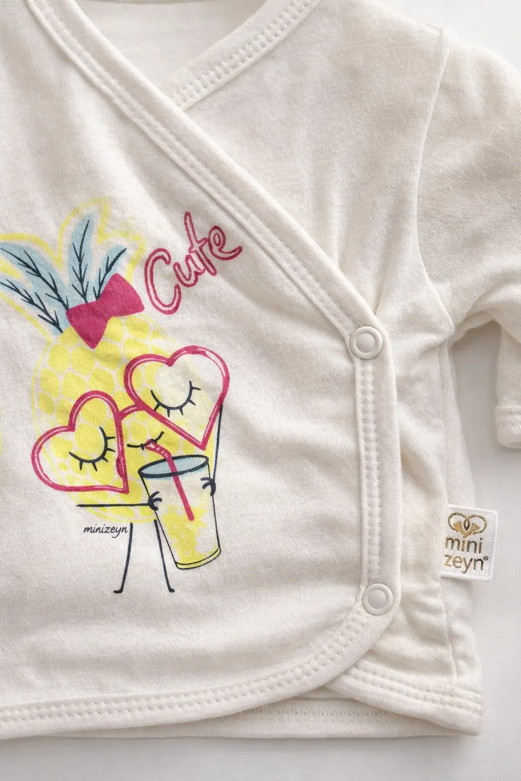 Sevimli Ananaslı Kalpli desenleriyle yenidoğan bebeğinizin hastane çıkışını şık ve konforlu hale getirin! %100 pamuklu, yumuşacık 5 parça hastane çıkış seti. Unisex kullanım için ideal, 0-3 ay bebeklere özel tasarlandı. Bebeğinizin hassas cildine nazik dokunuş!